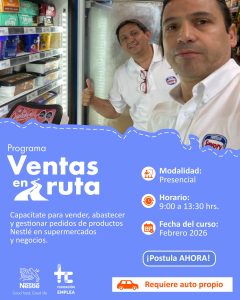 El Programa Ventas en Ruta Nestlé es una iniciativa de capacitación gratuita que busca preparar a personas interesadas en el rubro de ventas para desempeñarse como vendedores en ruta. A través de un curso presencial, los participantes aprenden técnicas de venta, atención de clientes y gestión de pedidos en supermercados y negocios.